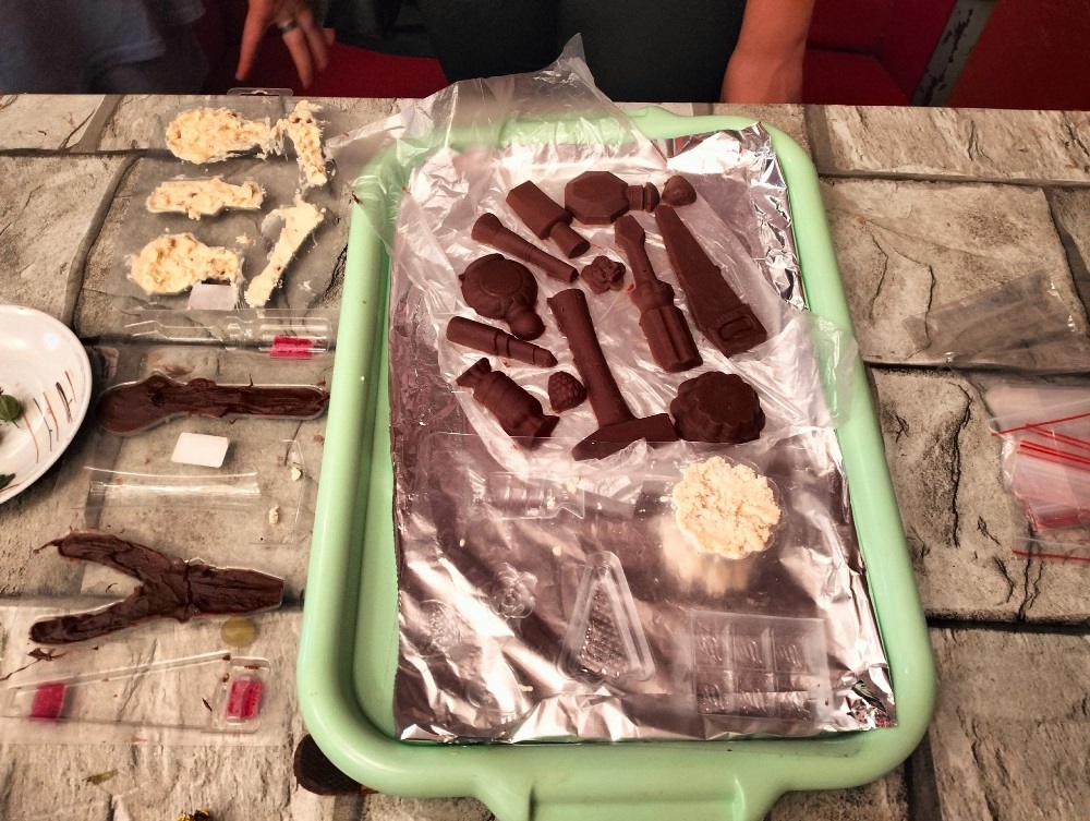 Из шоколада сделали: отвёртки, помады, кексы, цветы и даже молоток! А также создали шоколадный фонтан, который съели с удовольствием!