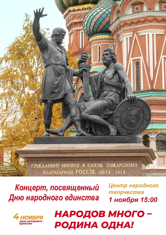 1 ноября в 15.00 в Центре народного творчества Медвенского района состоится праздничный концерт, посвящённый Дню народного единства.