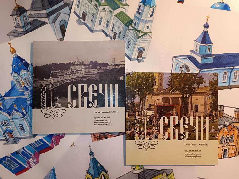 Дорогие медвенцы! У нас радостная и необыкновенная новость для всех, кому дорога малая родина, чья душа открыта для света небесного. Заведующая музеем им. Д.Я. Самоквасова О.В. Артёмова и методист Н.В. Артёмова выпустили «Свечи. Путеводитель по действующим и утраченным храмам Медвенского района».