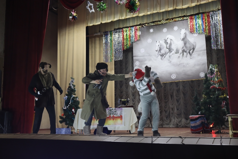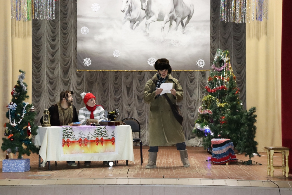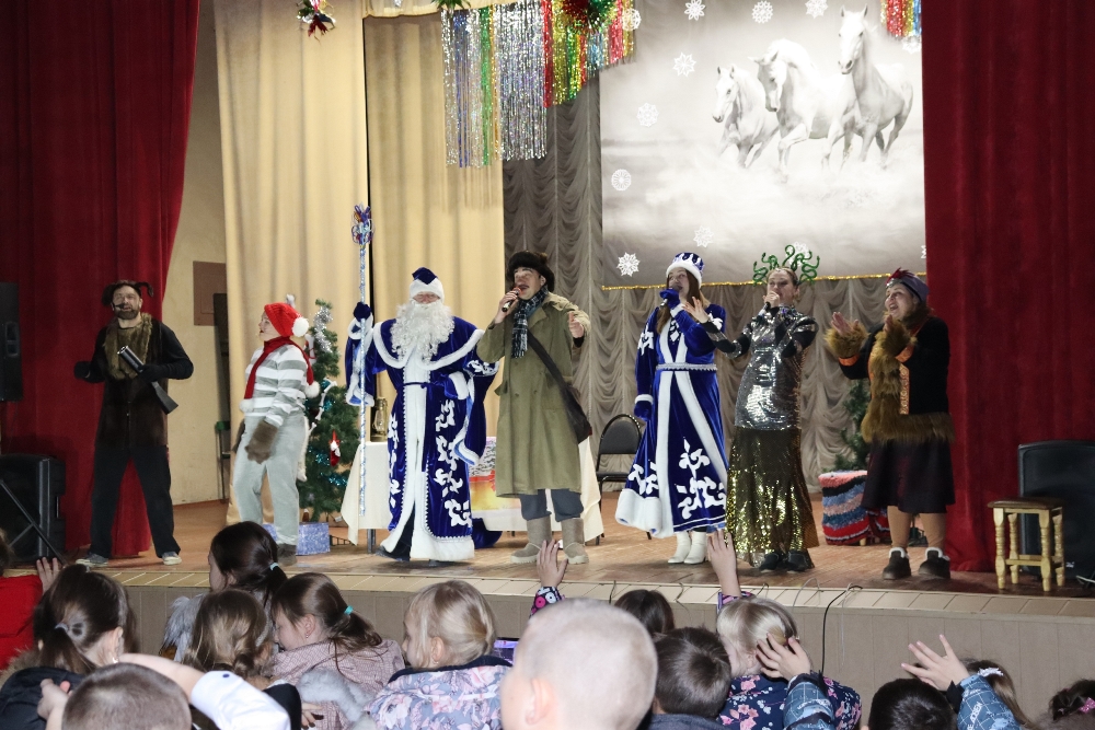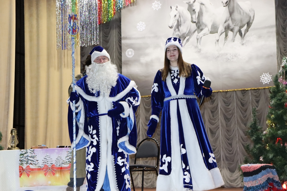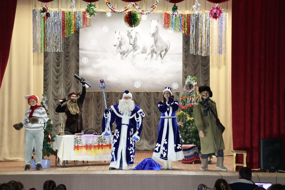 Встречайте нас под Новый год!Дед Мороз вам сладости везёт!Снегурочка загадки загадает,С подарком будет тот, кто много знает.