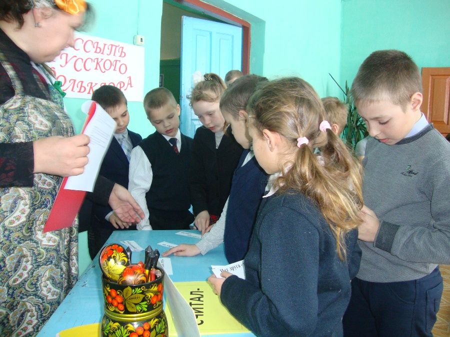 Страницами, которого были различные формы русского народного творчества: загадки, сказки, пословицы, игры, песни. В мероприятии принимали участие обучающиеся 1-4-х классов. Ребята с удовольствием участвовали в играх, конкурсах, викторинах, пели песни, играли на деревянных ложках. Закончилось мероприятие чаепитием и пирогами.