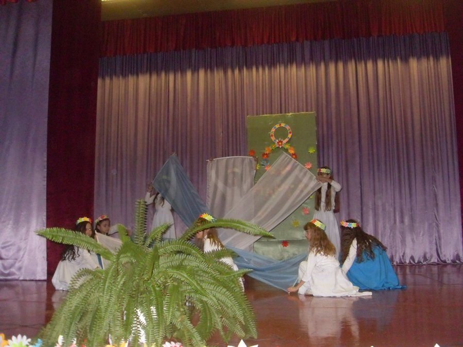 Вниманию зрителей была представлена сценка: "Бабушки старушки" в исполнении студентов. Танец "Небо" был исполнен обучающимися младших классов.