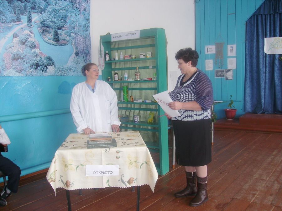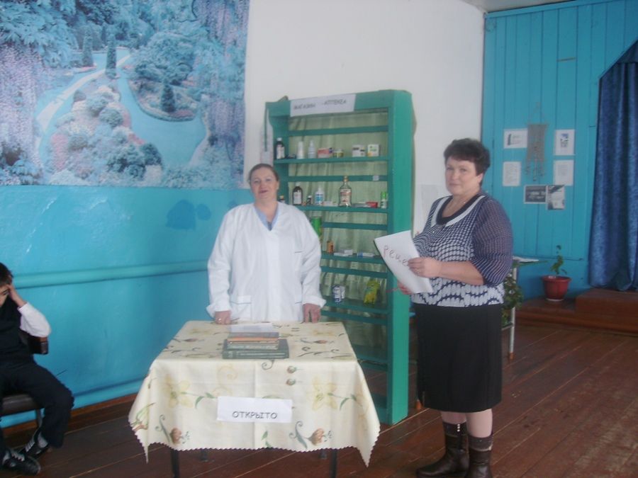 Программа состояла из выступления ведущих, песен, стихов, блиц - опроса, в котором принимал участие весь зал, мини сценки шуточного стихотворения "Аптека счастья". В конце мероприятия детей угостили сладостями.