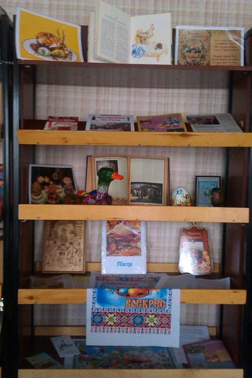 В читальном зале была оформлена книжная выставка: "И сошла на Землю благодать... Пасха". На выставке были представлены не только книги и периодические издания, но и поделки, которые сделали своими руками"