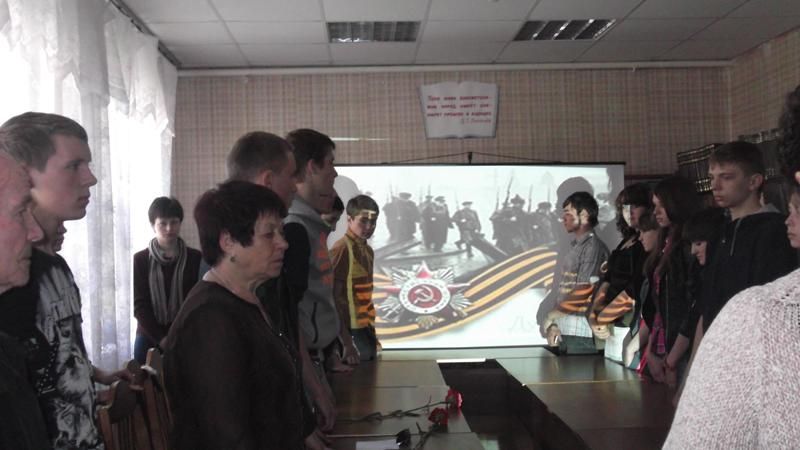 Собравшиеся почтили память минутой молчания тех, кто погиб защищая Родину. В конце мероприятия Волобуева Л.В. познакомила собравшихся с книжной выставкой "Бессмертный полк".
