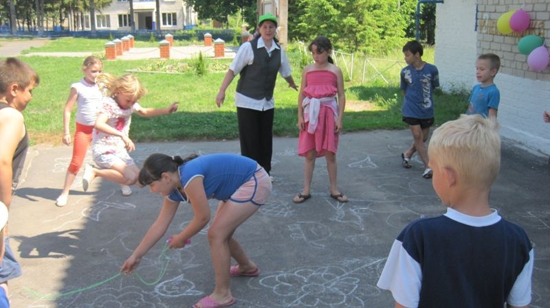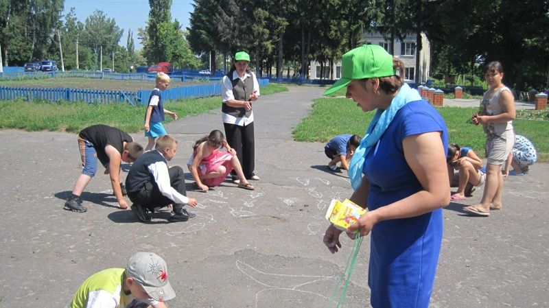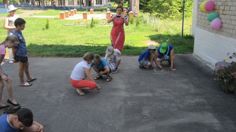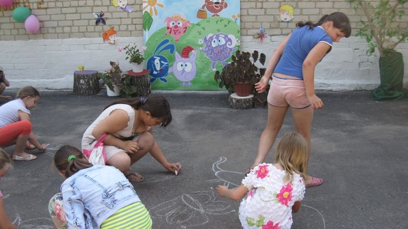 Игровая программа проходила на свежем воздухе, были проведен конкурс рисунков мелом на асфальте, конкурсы «Подводное царство», «Автопортрет».