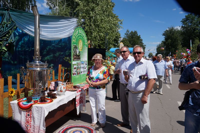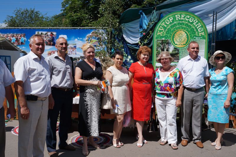 Интереснее всего бывать там, где по традиции размещаются подворья районов которые поражают своей фантазией, оригинальностью, огромной любовью к своей малой родине. Зрелище просто феерическое. Но наше медвенское подворье среди этой пестроты не затерялось. Казачий хутор со сторожевой вышкой и караульным на ней, пушкой у ворот - вот таким увидели наше подворье гости ярмарки. А встречали гостей в горнице нарядно одетые казаки и казачки. На хуторе можно было угоститься чаем, заварка была из душистых трав, из старинного большого самовара, который отчаянно пыхтел, стараясь напоить всех желающих. Люди заходили на подворье, фотографировались с хуторянами, знакомились с экспозицией, рассказывающей о нашем районе, о достижениях медвенцев.