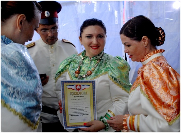Ее глаза сияют. Одухотворенное красивое лицо светится. Руководитель Медвенского казачьего ансамбля «Вольница», начальник Управления культуры, молодежной политики, физкультуры и спорта Администрации Медвенского района Юлия Ивановна Черняк рассказывает об очередной победе своего коллектива. А рассказать, действительно, есть о чем. Медвенский ансамбль «Вольница» принял участие во Всероссийском фестивале казачьей культуры «Крымские тулумбасы». Учредителями данного мероприятия выступили Министерство культуры Республики Крым, Государственное бюджетное учреждение культуры Республики Крым «Центр народного творчества Республики Крым» при поддержке Главы Республики Крым Сергея Аксенова. В мероприятиях фестиваля приняли участие 500 представителей из 6 регионов России: Астраханской, Волгоградской, Курской, Ростовской областей, Ставропольского края и Республики Крым. Более шести часов длилась конкурсная программа. Творческие коллективы в составе около 300 участников соревновались в таких жанрах искусства, как музыкально-инструментальное, вокальное, хореографическое, празднично-обрядовое. Кроме того, в замечательном празднике песни участвовали солисты и дуэты. И в этом искрометном великолепном действе не затерялись медвенские артисты. Не только зрители, но и члены жюри наградили «Вольницу» аплодисментами. Долго не смолкали крики «Браво». По итогам фестиваля медвенские артисты стали дипломантами второй степени, пропустив вперед лишь заслуженный коллектив из Волгограда.