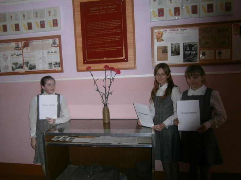 На мероприятии присутствовали обучающиеся начальных классов Тарасовской СОШ. Заведующая библиотекой представила ребятам книжную выставку: "Живая память".
