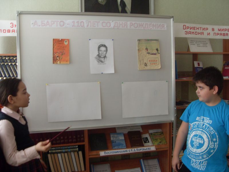 На мероприятии присутствовали учителя начальных классов и обучающиеся 3-4 класса. Заведующая библиотекой рассказала детям биографию А.Л Барто. Дети читали стихи, рисовали рисунки из полюбившихся произведений. В конце мероприятия Багликова Т.В. познакомила ребят с книжной выставкой: "А.Л. Барто - 110 лет со дня рождения".