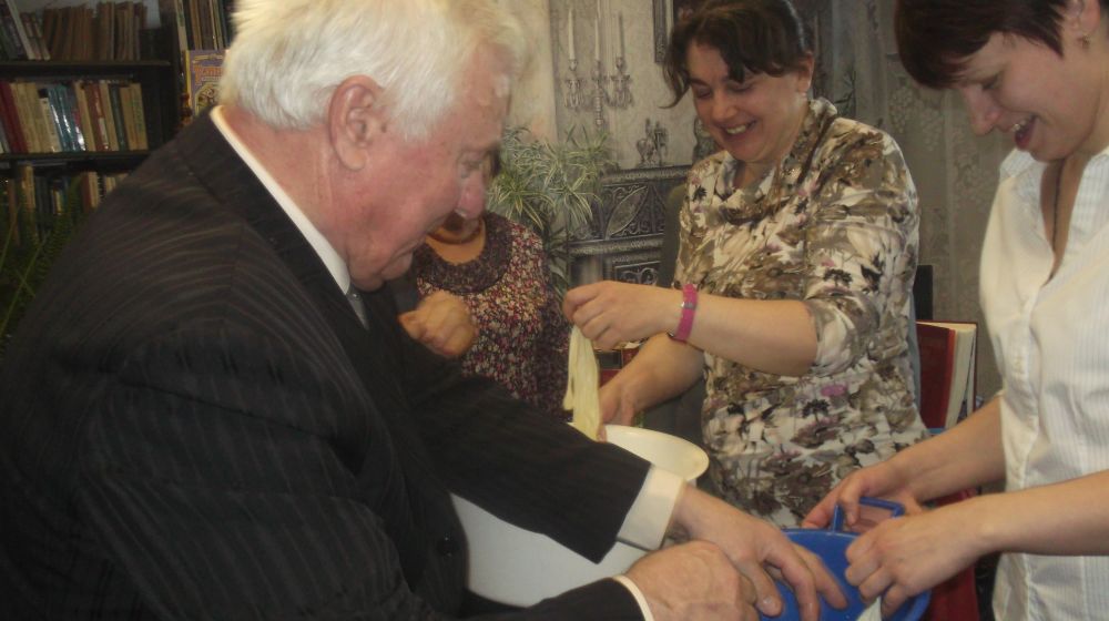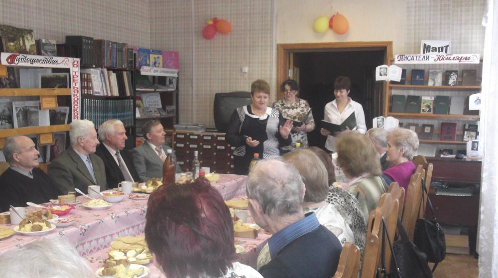 Гости отправились в путешествие по традициям масленичной недели: понедельник – «встреча», вторник – «заигрыш», среда – «лакомки», четверг – «разгул», пятница – «тещины вечерки», суббота – «золовкины посиделки», воскресенье – «проводы Масленицы» или «прощенное воскресенье», познакомились с историей праздника, отведали блинов с медом. Так же мужчины поздравили женщин с прошедшим праздником 8 марта и пожелали оставаться такими же красивыми, умными и обаятельными. Подарили женщинам цветы и праздничный каравай. Участники клуба отгадывали загадки, участвовали в увлекательных конкурсах, пели песни, танцевали и веселились от души, провожая надоевшую зиму. Все угощались блинами, под веселую музыку пели частушки и плясали. Было очень весело, интересно. Ведущими мероприятия специально к этому дню была оформлена книжная выставка: «Масленица идет, блин да мед несет» и проведен обзор литературы. И получился удивительный праздник, «сотканный» из музыки, песен и веселья. Вот так и пролетела наша встреча, а впереди еще много нового и увлекательного ждет наших участников клуба.