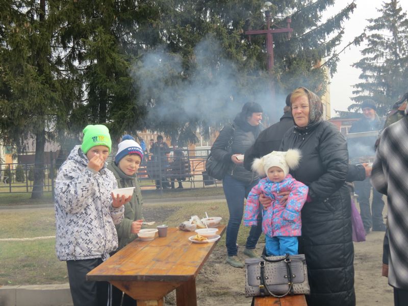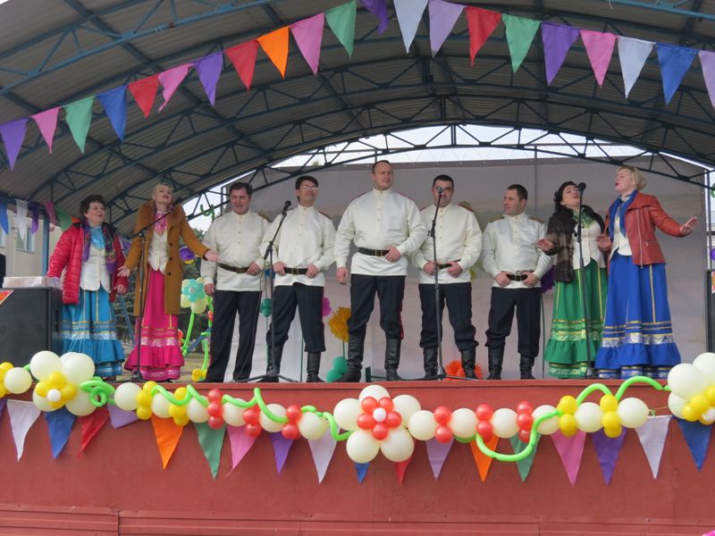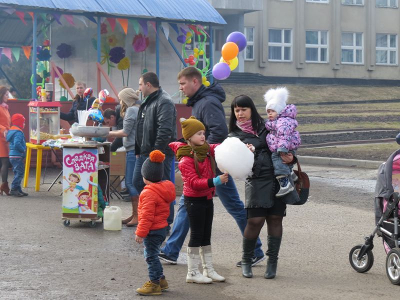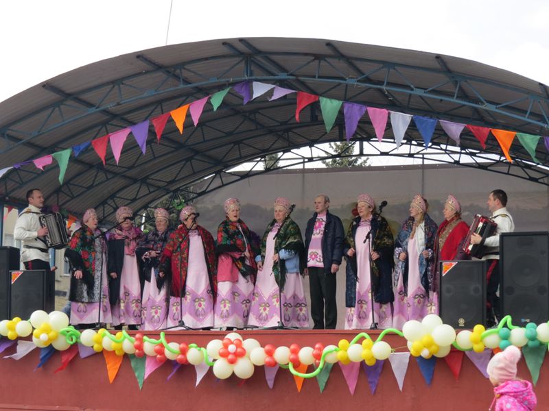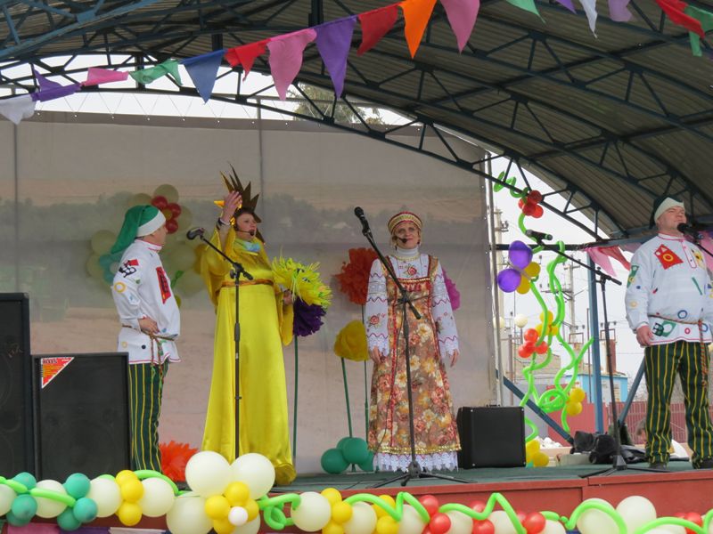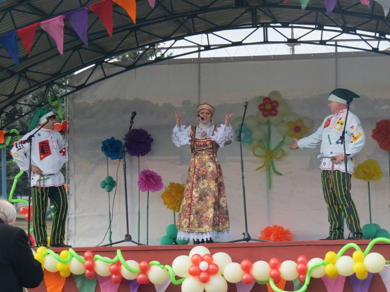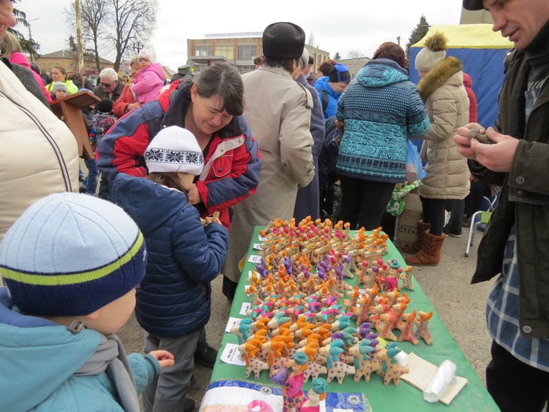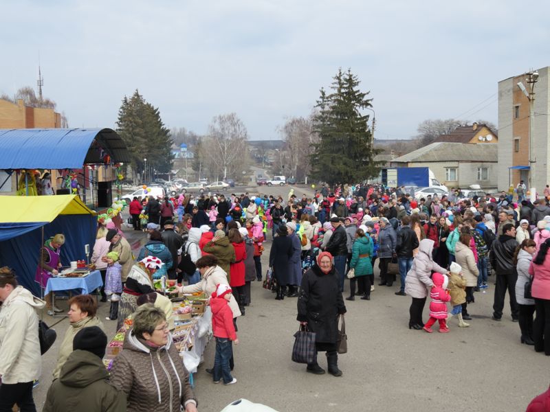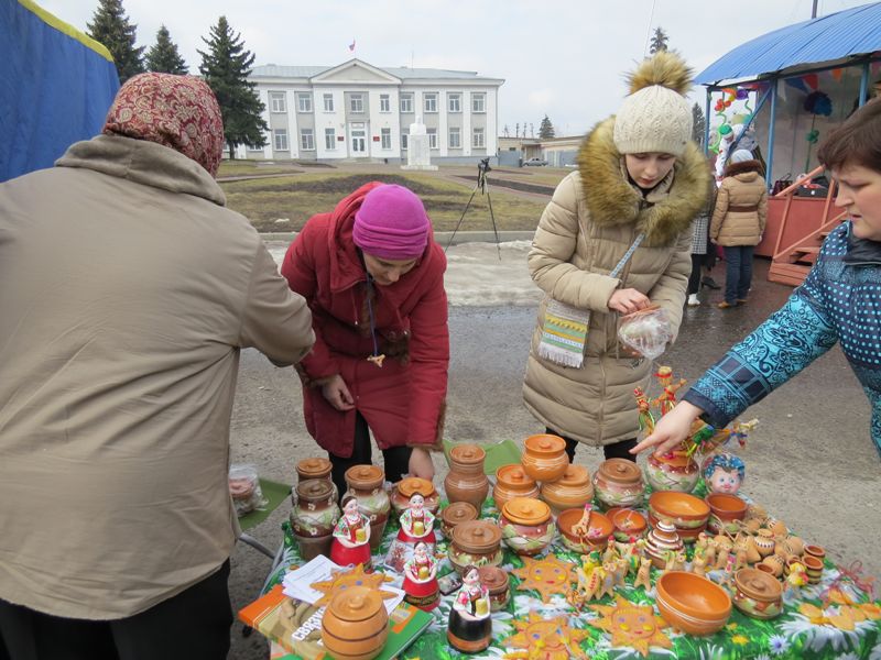 Рядом со сценой шумела бурная торговля, где жителям и гостям п. Медвенка были представлены сладкая выпечка, блины, булочки, а запах шашлыков и идущий от мангалов дым, казалось, валили с ног. Раскинули “поляны” конфет медвенские предприниматели. Малышня, пришедшая вместе с родителями на праздник, настойчиво тянула мам, пап, бабушек и дедушек к лоткам с разнообразными воздушными шариками, сладкой ватой и попкорном. И все вместе то отходили, то вновь возвращались к мастерам гончарного искусства из Курчатовского района. Они привезли медвенцам крынки и горшочки, солонки и традиционную кожлянскую игрушку-свистульку. А еще можно было купить сувенирную Масленицу, сотворенную как из глины, так и из соломки. В общем, выбор был на все возрасты и вкусы.
