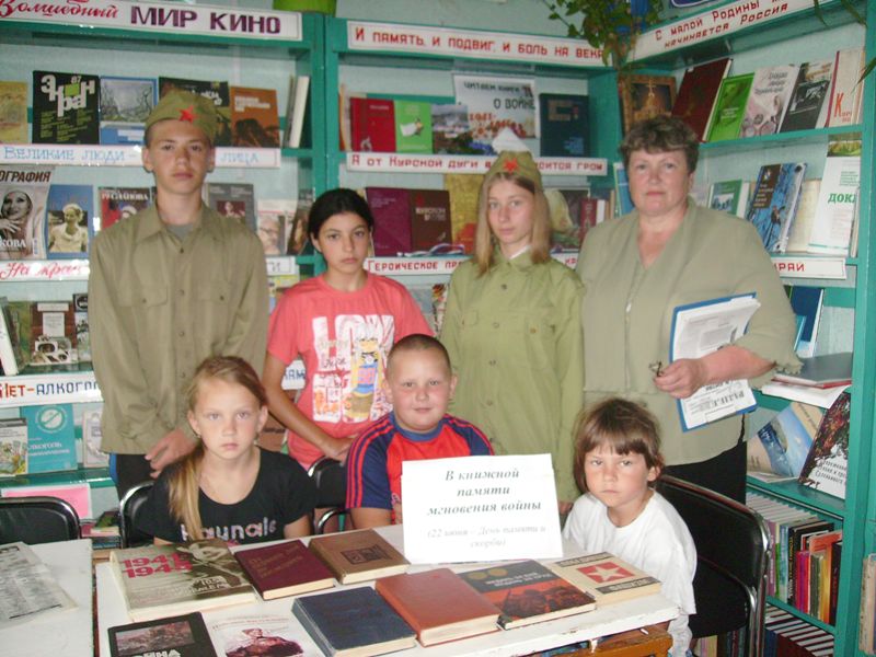 22 июня – День памяти и скорби о героях, павших в боях за свободу нашей Родины. Это незаживающая рана, память о погибших в душах женщин, матерей, отцов, детей. Заведующая библиотеки рассказала ребятам о тех страшных днях начала Великой Отечественной войны, которая оборвала жизни миллионов людей. К мероприятию была оформлена книжная выставка: «В книжной памяти мгновения войны».