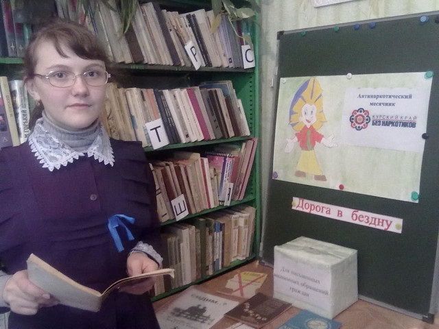 На мероприятие была оформлена книжная выставка: «Дорога в бездну» и проведен обзор литературы. Для наглядности использовались плакаты, которые нарисовали сами ребята.