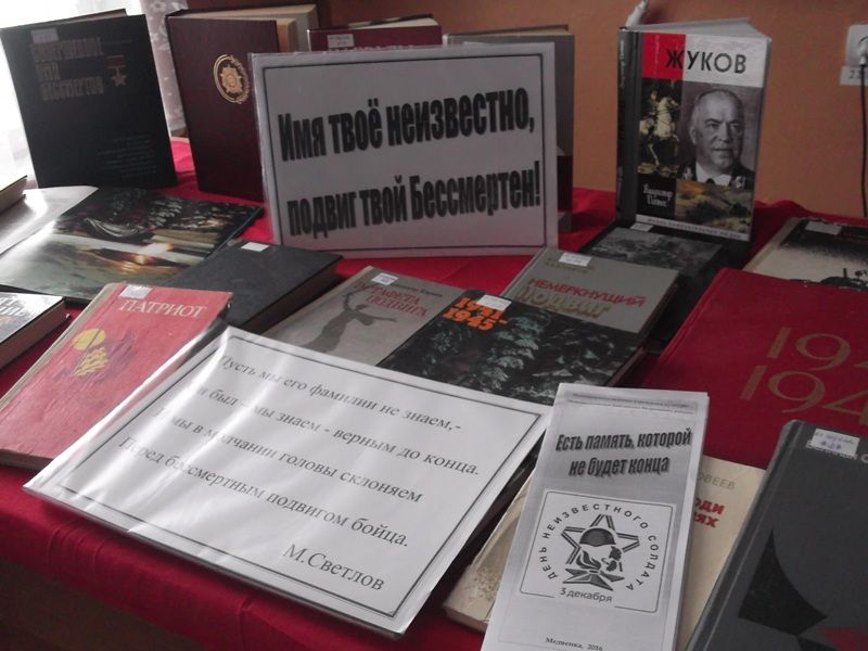 Ко Дню Неизвестного Солдата сотрудники подготовили книжную выставку «Имя твое неизвестно, подвиг твой бессмертен».