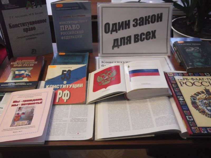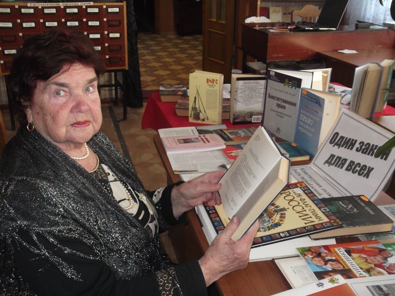 Заведующая отделом обслуживания Волобуева Людмила Васильевна пригласила всех присутствующих ознакомиться с представленной на книжной выставке литературой, которая отражает основные вехи истории главного закона страны, начиная от зарождения российской конституционной мысли 19 века до Конституции РФ 1993 года. Посетители могут проследить всю цепочку событий, итоговым результатом которых и стало принятие основного Закона страны.