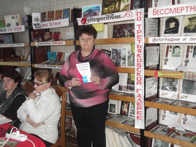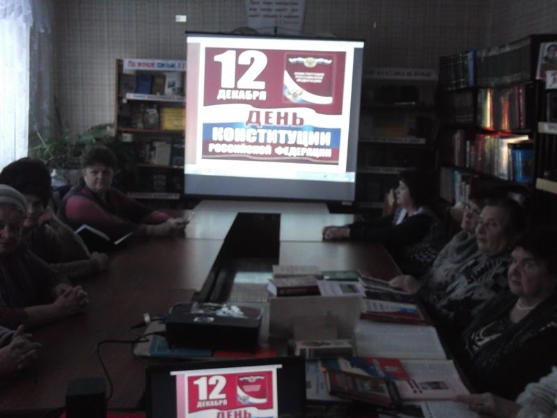 К этой дате в читальном зале «Межпоселенческая библиотека» совместно с прокуратурой Медвенского района провели круглый стол: «Основной закон России». Были приглашены гости с общественной организации Медвенского районного совета ветеранов войны, труда, Вооруженных сил и правоохранительных органов.