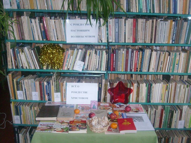 Заведующая библиотекой рассказала ребятам об истории возникновения Рождества, о том, как православные всего мира торжественно встречают этот праздник. В библиотеке была оформлена книжная выставка: «Всё о Рождестве Христовом», у выставки был проведен обзор литературы.