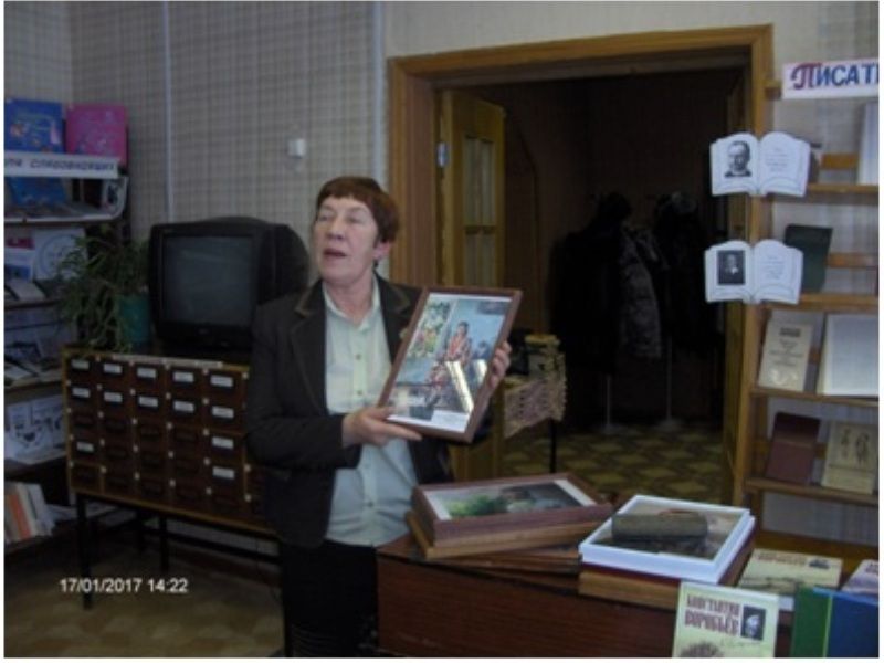На встрече гости рассказали о себе, почитали свои стихи и прозу. Лидия Алексеевна познакомила присутствующих с картинами, которые написали наши земляки – Чепцов Е.М. и Котов С.А.