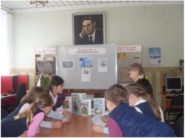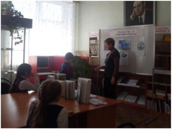Присутствующие познакомились с книжной выставкой: «Экология и современность». На ней были представлены плакаты по экологии, книги о природе и животных.