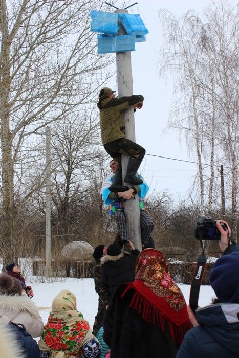 Скоморохи зазывали зрителей поучаствовать в конкурсах и играх. Главной героиней, конечно, стала Масленица, которая встретила Весну. Не забыли о традициях масляной недели. Зрители стали участниками весеннего хоровода, самые сильные ловкие состязались в поднятии 16-кг гири и пробовали достать ценные призы со столба, бегали в мешках, катались на санках с горки, на катке, скоморохи пригласили поучаствовать в боях с мешками на бревне, походить на ходулях.