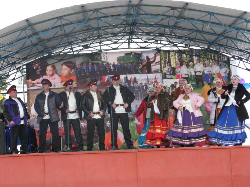 Проводы «Широкой масленицы» представили артисты районного Дома культуры.И для всех желающих повеселиться была подготовлена большая концертная программа. Казачий ансамбль «Вольница», хор ветеранов «Родной напев» радовали всех гостей праздника своими веселымипеснями и частушками. Заводные скоморохи раздавали сладкие угощения и складно зазывали народ потягаться в силе и ловкости, развлекали детей различными соревнованиями.Отказаться от участия в играх не решался никто, помня старое поверье: кто лучше погуляет, у того больше будет денег и счастья в этом году. Силачи поднимали пудовые гири, а главной масленичной забавой стал ледяной столб, на который только смельчаки отваживались забираться за подарками.