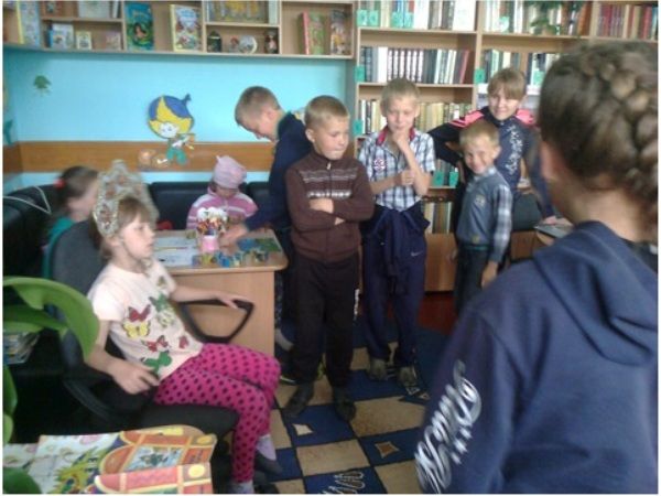 Для детей библиотекарь подготовила интересную программу,где дети участвовали в конкурсах: «Узнай сказку по отрывку», «Царевна Несмеяна», «Три орешка», «Путаница», «Собери сказку». Маленькие дети с удовольствием раскрашивали сказочные раскраски. Также для школьников был показан мультфильм «Кошкин дом».