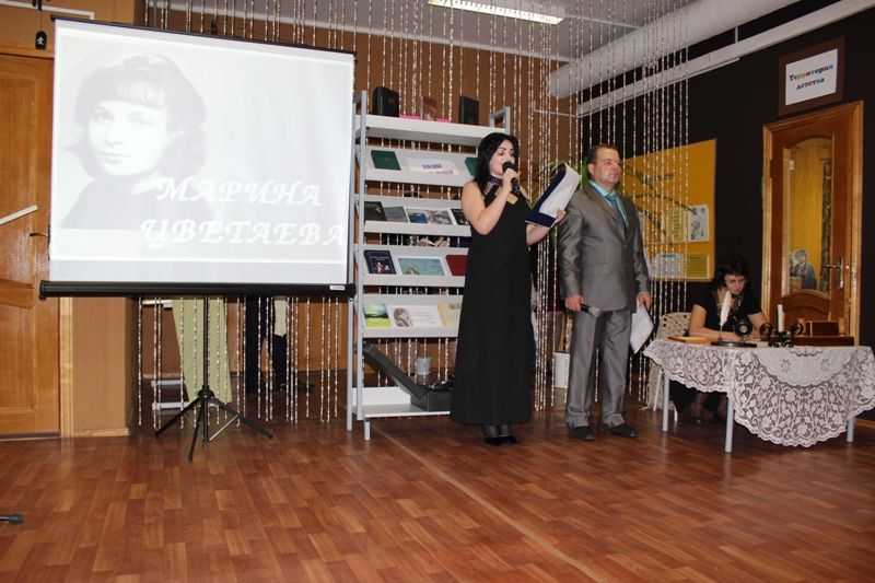Затем всех присутствующих ждал литературный подарок, посвященный 125-летию со дня рождения М.Цветаевой, русской поэтессы, прозаика, переводчицы, одной из крупнейших поэтов XX века и открытию модельной библиотеки - литературно-музыкальный эскиз: «Час души». Его подготовили работники Медвенского РДК. Эскиз произвёл огромное впечатление на всех участников мероприятия.