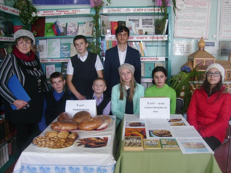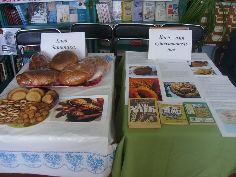 Мероприятие прошло на фоне выставки «Хлеб – имя существительное», где кроме книг были представлены рецепты выпечки хлеба.