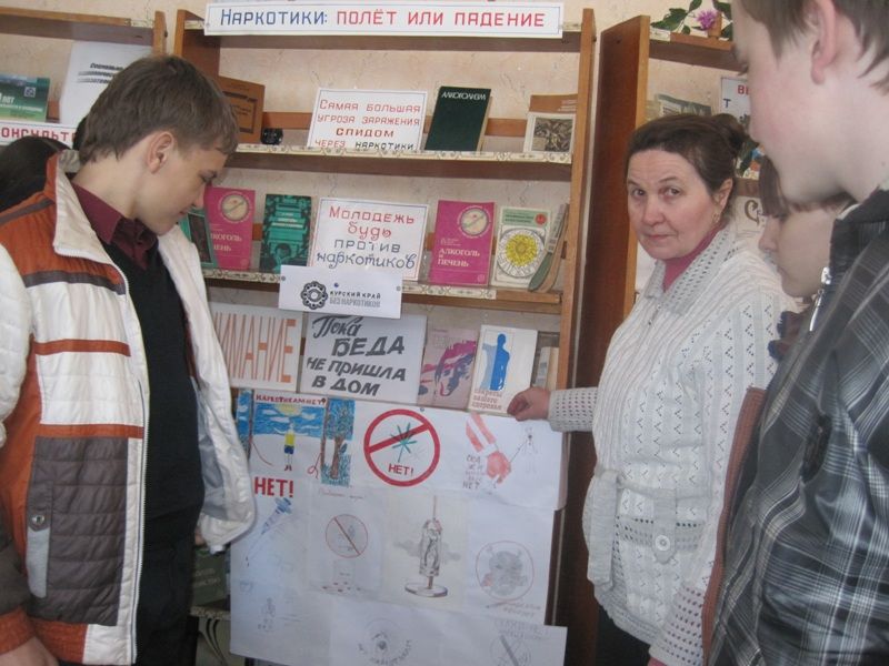 В библиотеке оформлена книжная выставка « Наркотики: полет или падение», у выставки провели обзор. Оформлен стенд «Курский край без наркотиков».