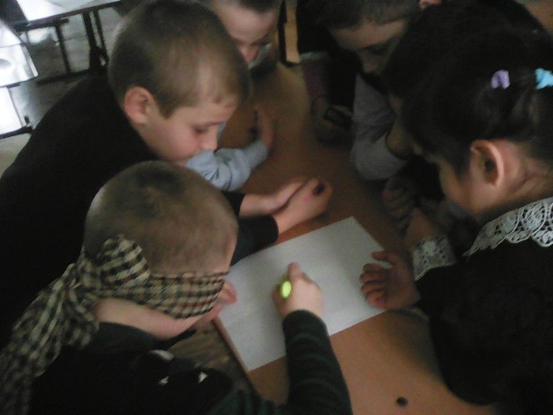 В начале игры библиотекарь рассказала какие бывают сказки. Затем Пивнева Л. Л. зачитывала ребятам телеграммы от сказочных героев. Разгадывали загадки от Бабы Яги. С завязанными глазами ребята рисовали сказочных героев.