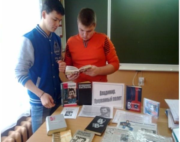 Студенты слушали записи песен и театральных монологов в исполнении Высоцкого, его стихи, очень глубокие по своему духовно - философскому содержанию и заставляющие о многом задуматься. Особый акцент был сделан на песни Высоцкого, посвященные Великой Отечественной войне.