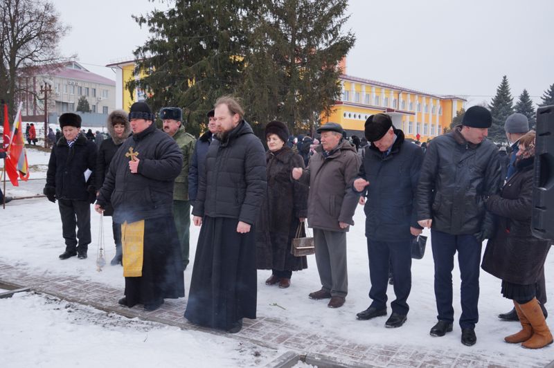 Благочинный Медвенского церковного округа протоиерей Виталий Киреев в сослужении клирика Успенского храма п. Медвенка иерея Дмитрия Долженкова совершили панихиду по погибшим воинам.