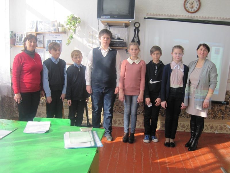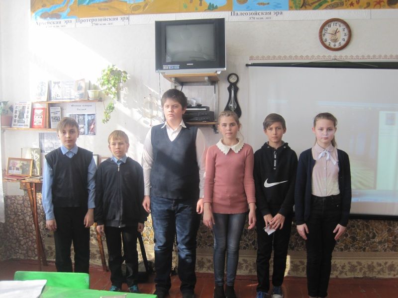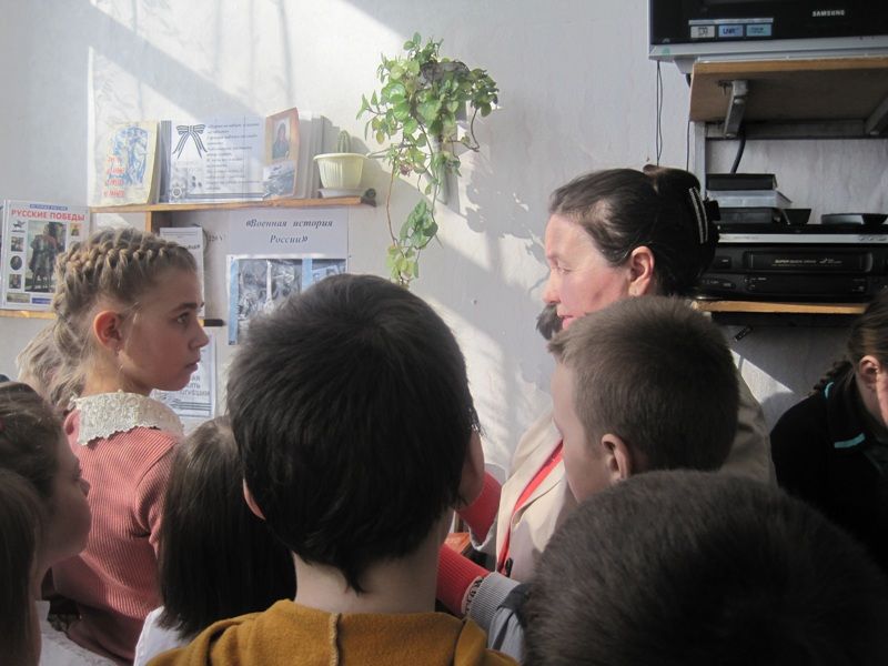 Ведущие рассказали ученикам о доблестной и героической Русской армии. Затем были просмотрены видеоролики об истории войн, в которых России пришлось участвовать, музыкальный видеоролик «Ты помни!» на песню Татьяны Недельской , видеоролик «Что мы знаем о войне» и «Красной армии 100 лет». Ребята 5-6 классов прочитали стихотворения «Как было много тех героев», «Ты извини меня солдат», «Он убит на афганской войне» и другие. Оформлена книжная выставка «Военная история России» и проведен обзор литературы. Присутствовало 30 человек.