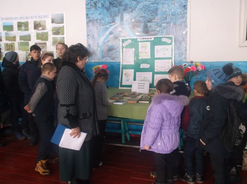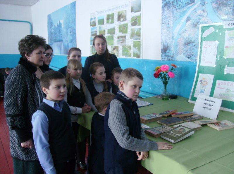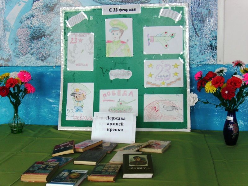 Для читателей была представлена книжная выставка «Держава армией крепка» и выставка детских рисунков «23 февраля».