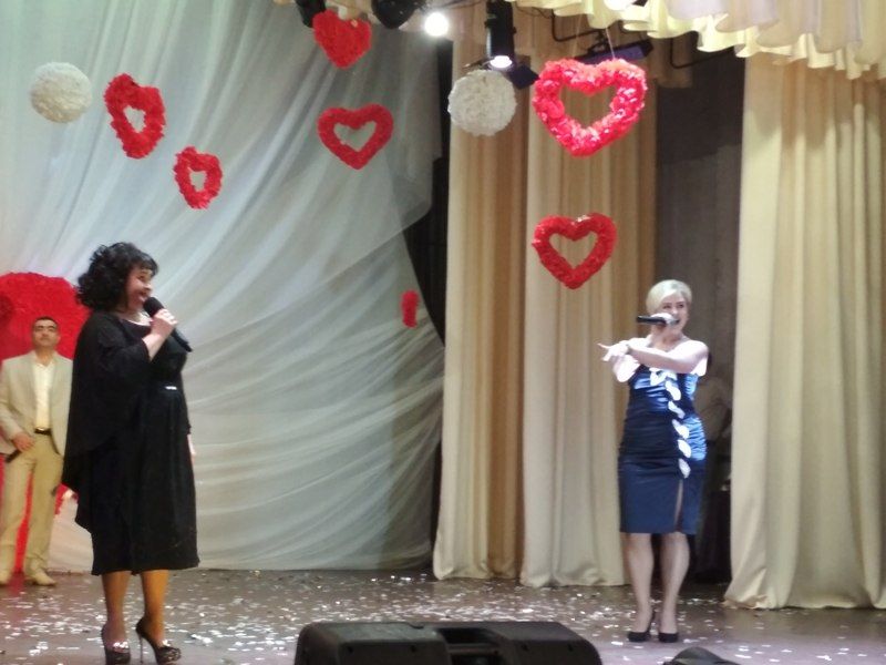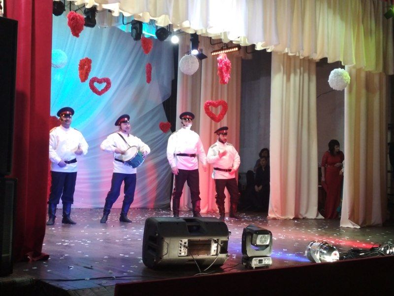 Зрительный зал в этот вечер вместил столько посетителей, что места не было даже в проходах. Вот сколько желающих пришло посмотреть концертную программу и принять поздравления!