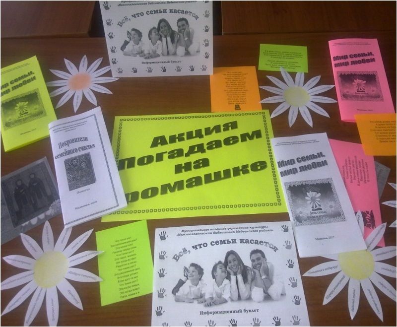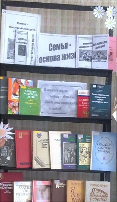 К мероприятию была подготовлена книжная выставка «Семья основа - жизни», где были представлены книги о празднике, о роли семьи, о семейных отношениях и воспитании детей. Участники акции поздравили жителей посёлка с Днём любви, семьи и верности, дарили закладки со стихами, буклеты с историей возникновения праздника и вручали всем символ праздника - ромашку с добрыми пожеланиями.