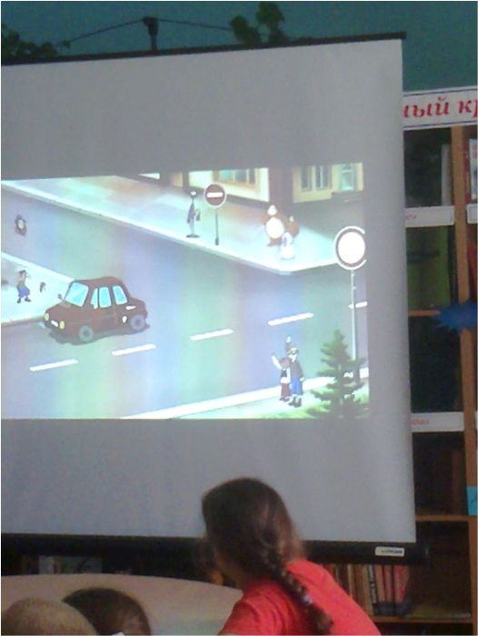 Для школьников была подготовлена интересная программа с конкурсами и играми. Дети с большим удовольствием выполняли свои задания: отгадывали кроссворд, отвечали на вопросы, слаживали пазлы, катались на велосипеде с препятствиями. Библиотекарь рассказала детям о правилах безопасности на дороге, как надо себя вести на улице и показала детям дорожные знаки, которые необходимо знать каждому ребенку. Также детям был показан мультипликационный фильм «Уроки тетушки совы по правилам дорожного движения». Дети закрепили свои знания в области безопасности на дорогах.