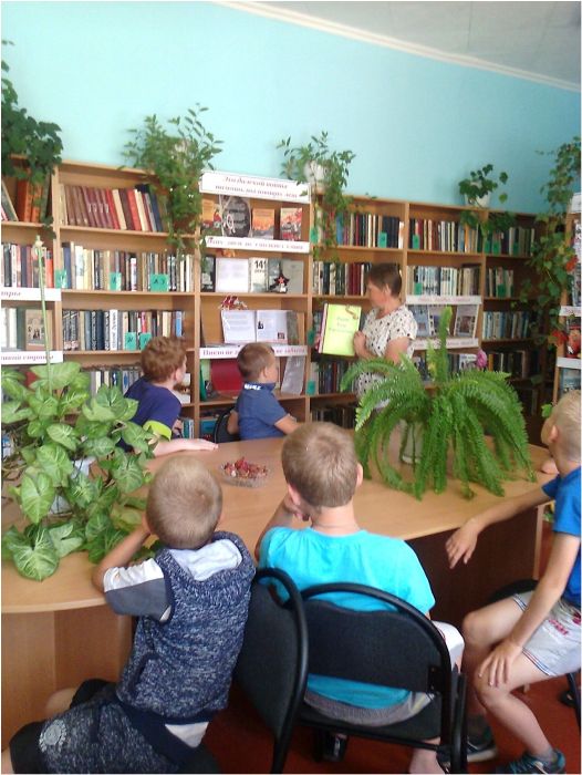 Библиотекарь провела обзор литературы у выставки «Эхо далекой войны -память пылающих лет». Также для школьников был показан художественный фильм «Повесть о настоящем человеке» и электронная презентация «Труженики тыла».