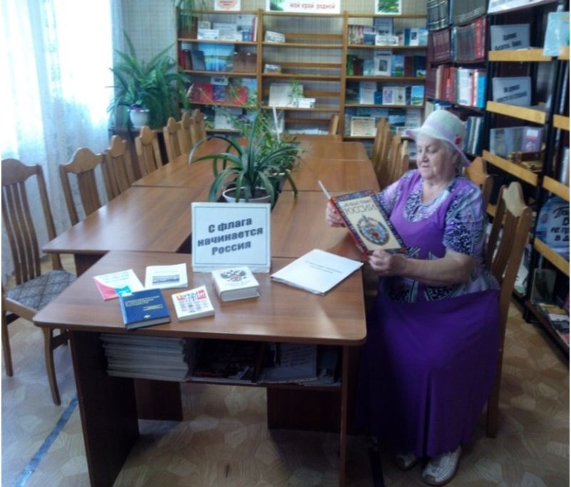 Библиотекарь Шевченко Е.В. рассказала читателям историю возникновения и утверждения флага, как одного из символов государства российского, о том, что в каждой стране существует триединство символов: герб, флаг, гимн.