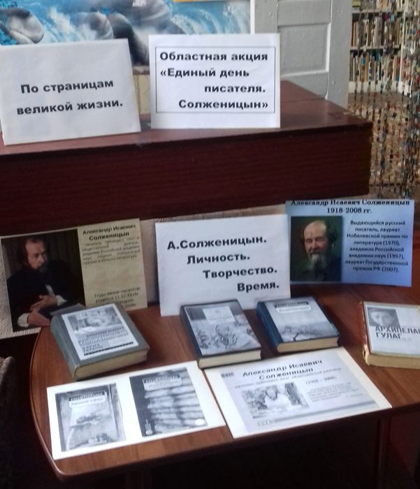 Для всех почитателей личности и творчества Солженицына в библиотеке оформлена книжная выставка "По страницам великой жизни".