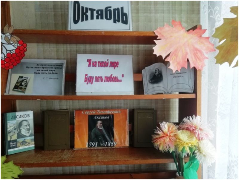 8 октября в МКУК «Межпоселенческая библиотека Медвенского района» была оформлена книжная выставка «Я на тихой лире буду петь любовь...», посвященная 227-летию со дня рождения русского писателя Сергея Тимофеевича Аксакова.