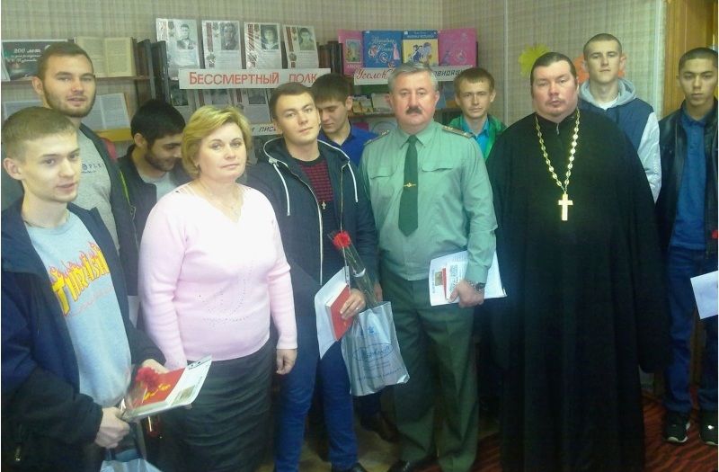 По уже сложившейся традиции клирик Успенского храма поселка Медвенка иерей Димитрий Долженков благословилбудущих воинов на доблестную службу Отечеству и подарил каждому призывнику православные книги и нательные кресты.