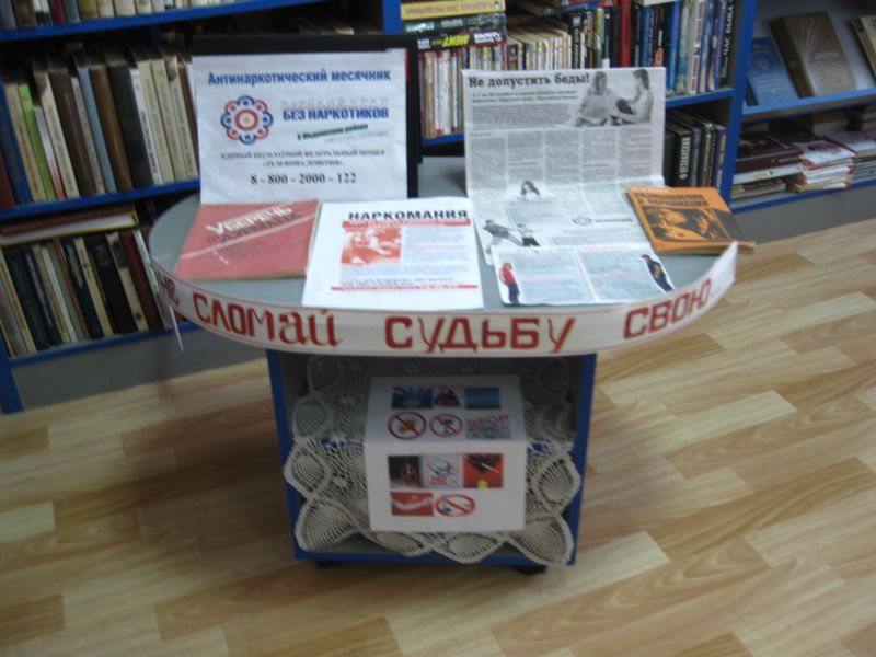 Библиотекарь оформила книжную полку «Не сломай судьбу свою», на которой были представлены материалы и информация.