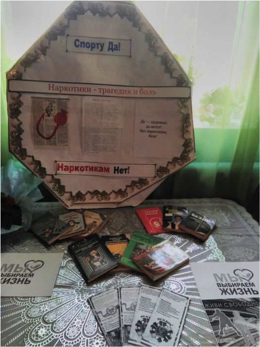 Была оформлена книжная выставка «Наркотики — трагедия и боль».