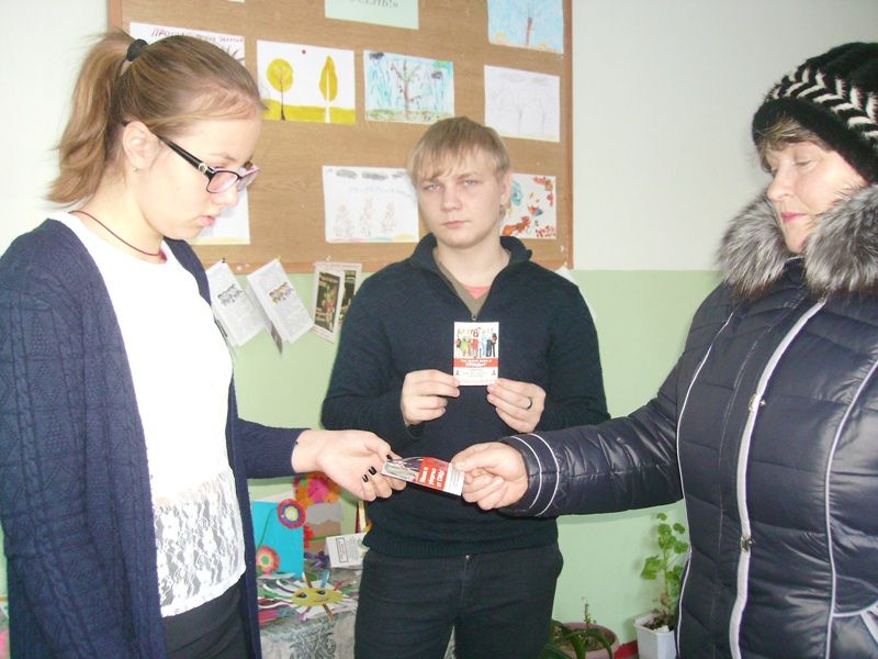 Библиотекарь встречалась с разными категориями населения и задавала следующие вопросы: кто виноват в болезни; необходимо ли тестировать все население на ВИЧ или нет; могут ли дети, больные СПИДом посещать учебные заведения.. В ходе опроса были высказаны свои точки зрения на эти проблемы, а также были вручены буклеты «Можно ли уберечься от СПИДа?».