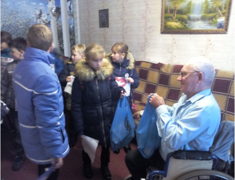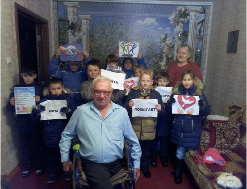 Библиотекарь рассказала детям о том, что в нашем селе есть человек у которого проблемы со здоровьем, это Вяземский Николай Алексеевич и предложила сходить к нему в гости. У Николая Алексеевича дети читали стихи, подарили рисунки, которые они нарисовали для него, угощали его сладкими гостинцами. Николай Алексеевич был очень рад таким гостям и что к нему такое большое внимание.