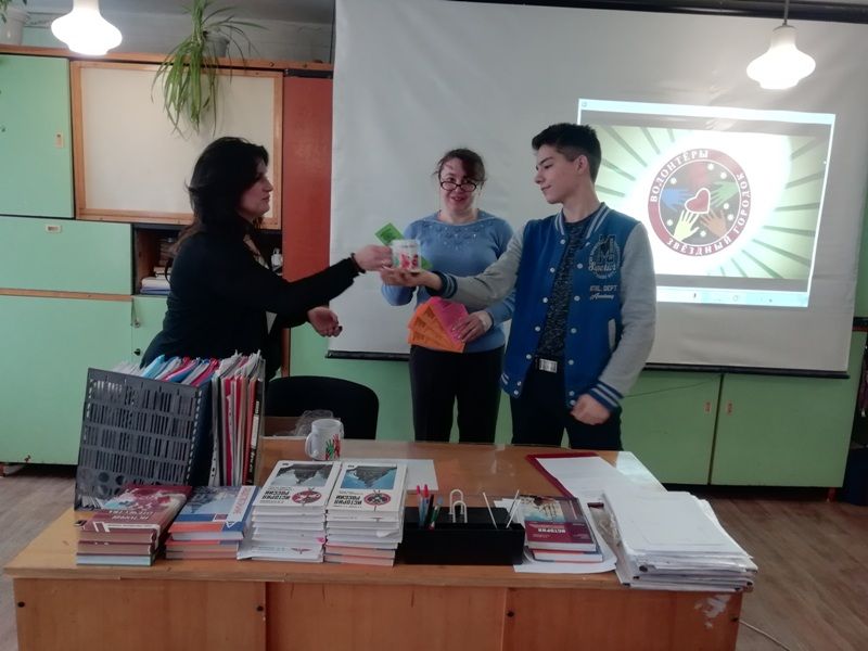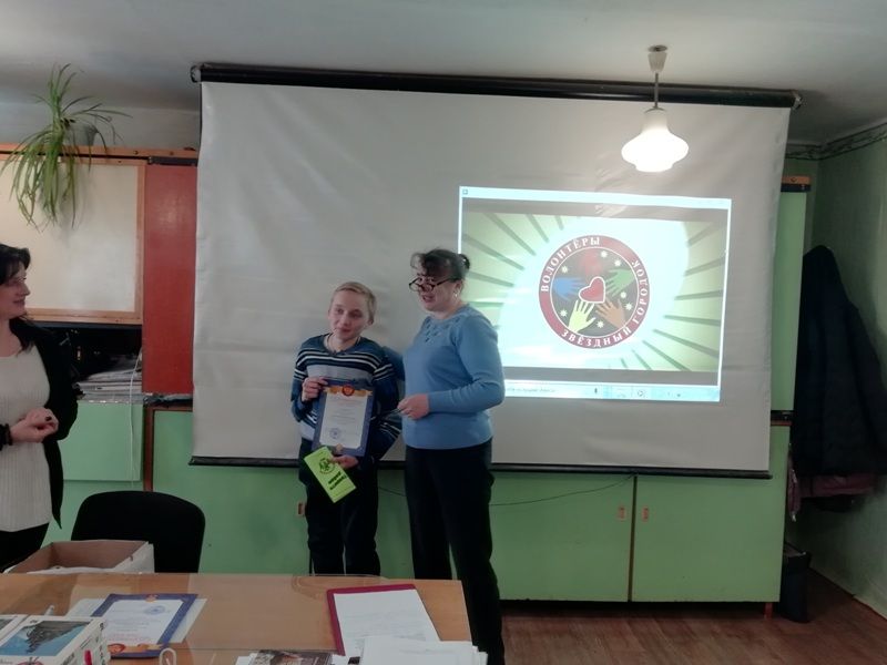 За активное участие в общественной жизни и большой вклад в развитие добровольческого движения в районе, были награждены благодарственными письмами и памятными подарками: Кузнецов Владимир, Чертова Елена, Яковенко Анна, Демидов Данил, Сазонов Артём и др. В завершение мероприятия пришли к общему выводу, что эстафете добра был дан хороший старт, но это только еще начало.