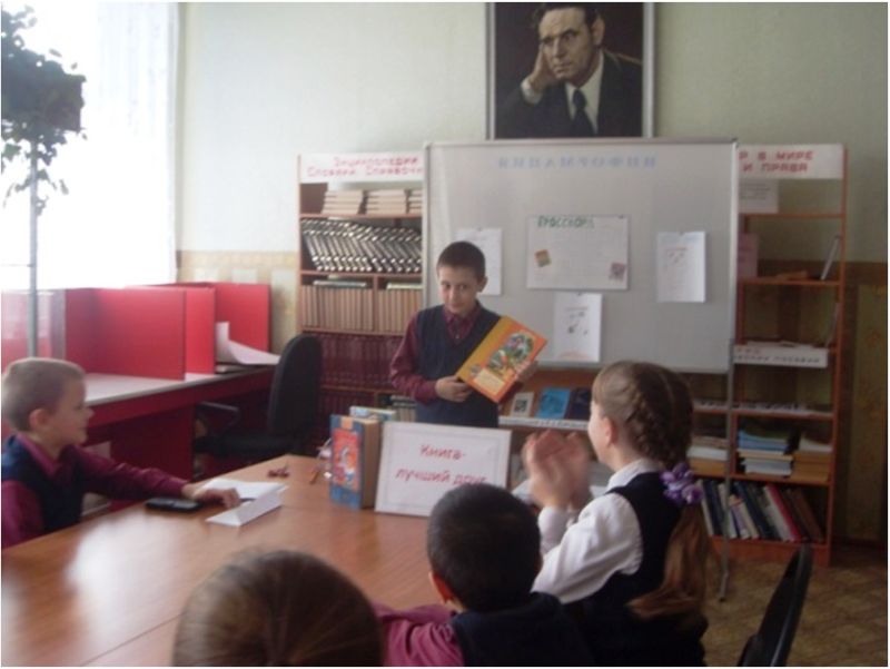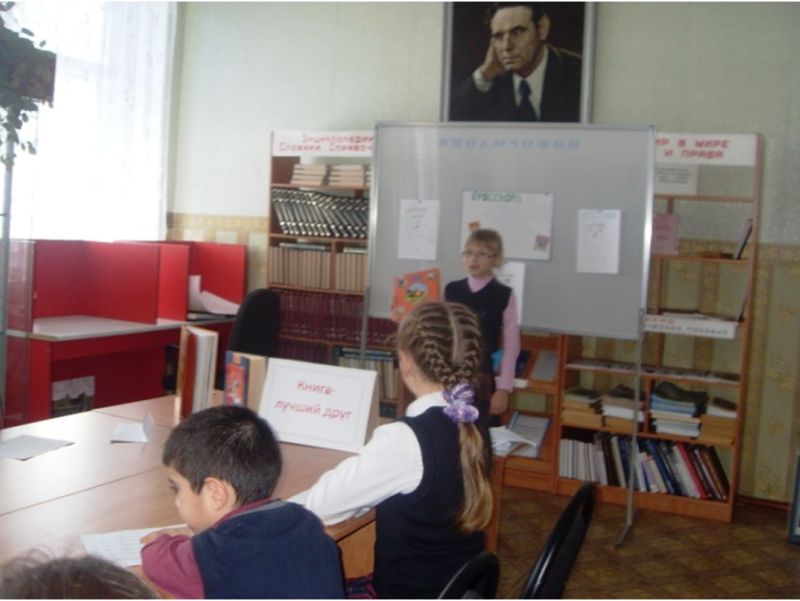 Заведующая библиотекой рассказала детям об истории возникновения книги, о том, какой непростой путь прошла книга, прежде чем стала такой как сегодня. Учащихся познакомили с понятиями « абонемент», «читальный зал», «каталог». Дети разгадали кроссворд, ответили на вопросы викторины, отгадали загадки, сложили пословицы,посвященные книге.