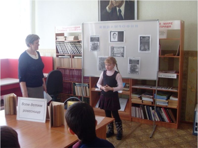 В мероприятии приняли участие учащиеся 2-3 классов. Заведующая библиотекой познакомила детей с творчеством Ирины Токмаковой. Учащиеся отправились в заочное путешествие- в чудесную страну стихов, в которой все звери,птицы,рыбы,деревья и травы говорят стихами детской писательницы.